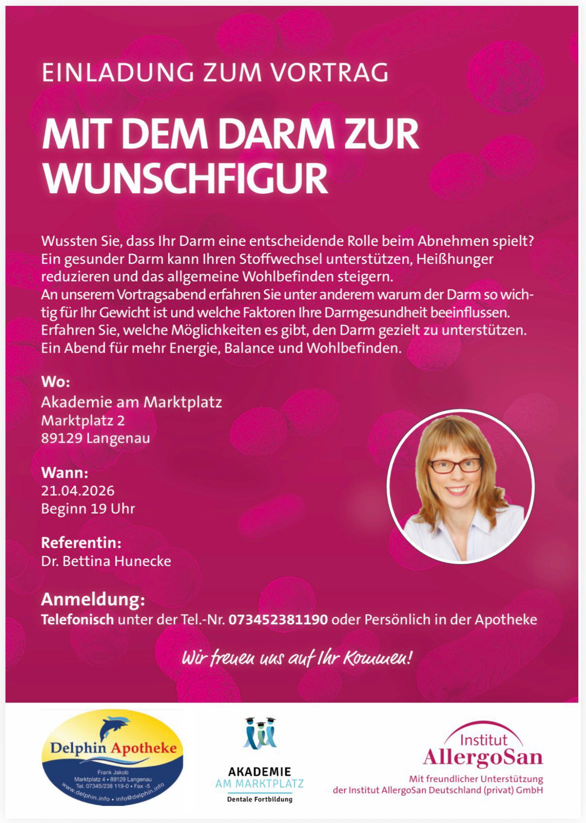 An unserem Vortragsabend erfahren Sie unter anderem, warum der Darm so wichtig für Ihr Gewicht ist und welche Faktoren Ihre Darmgesundheit beeinflussen.